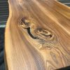 - Book matched Elm table top finished in Odies oil with defects filled in black resin.